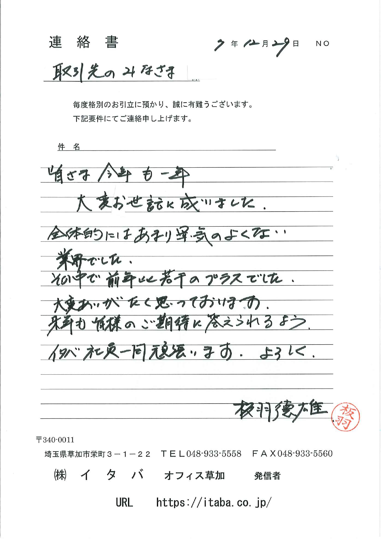 取引先のみなさまへ